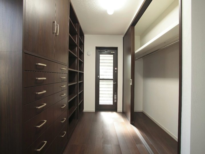 A volte corridoi stretti con porte situate all'estremità destra e sinistra in un vicolo cieco. Puoi usarlo per organizzare un armadio a muro. La larghezza di tale struttura sarà piccola, poiché coincide con la larghezza del corridoio, ma non ci sono restrizioni in profondità.