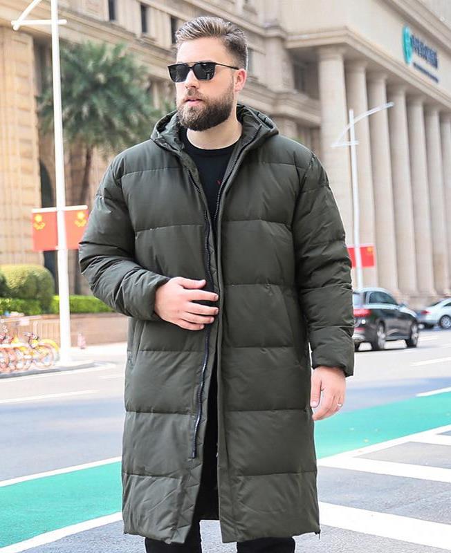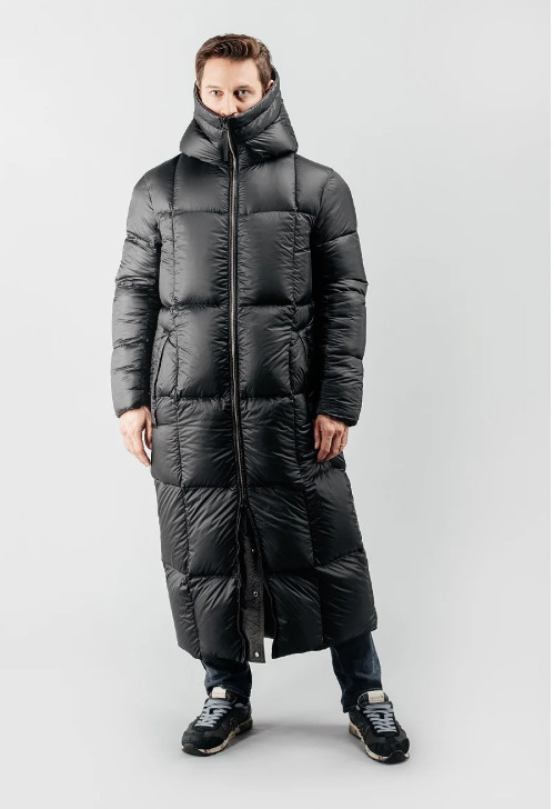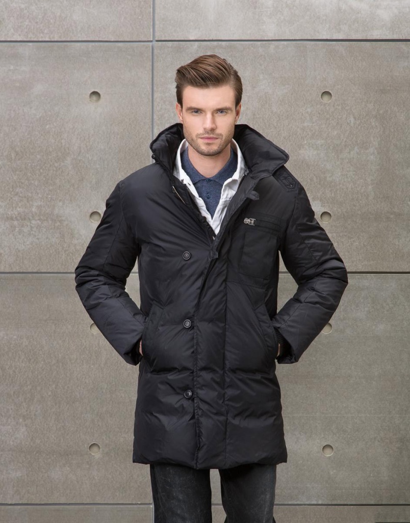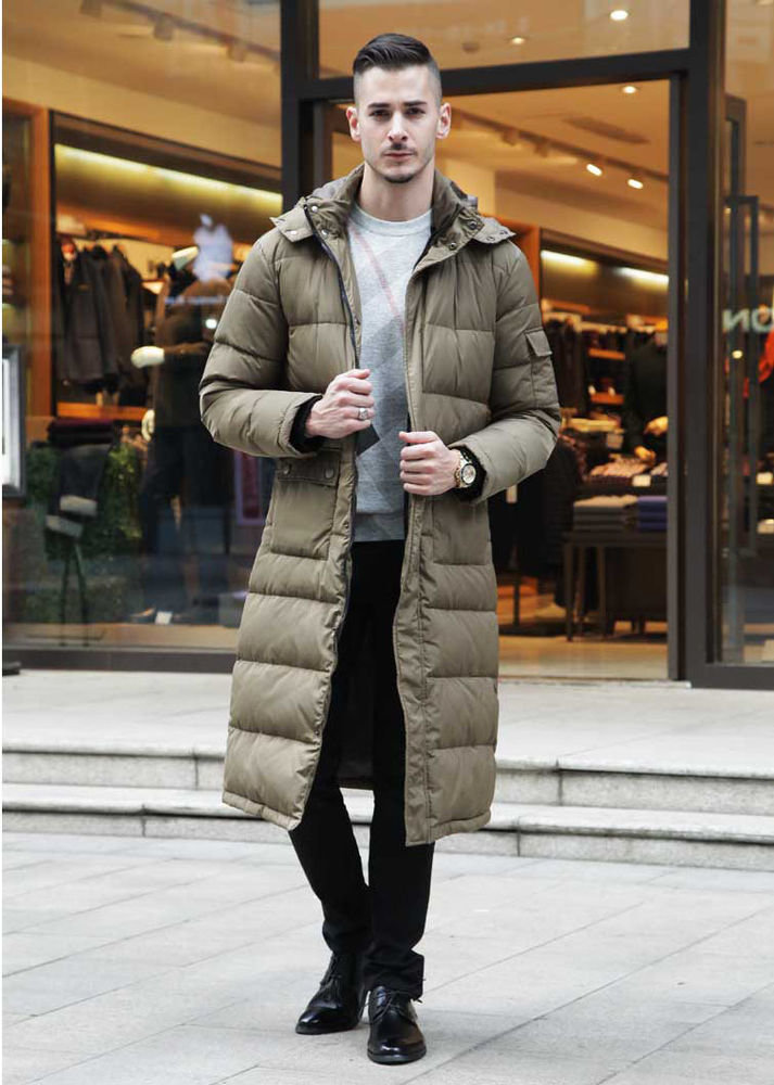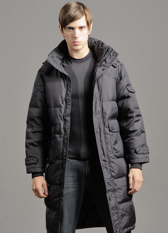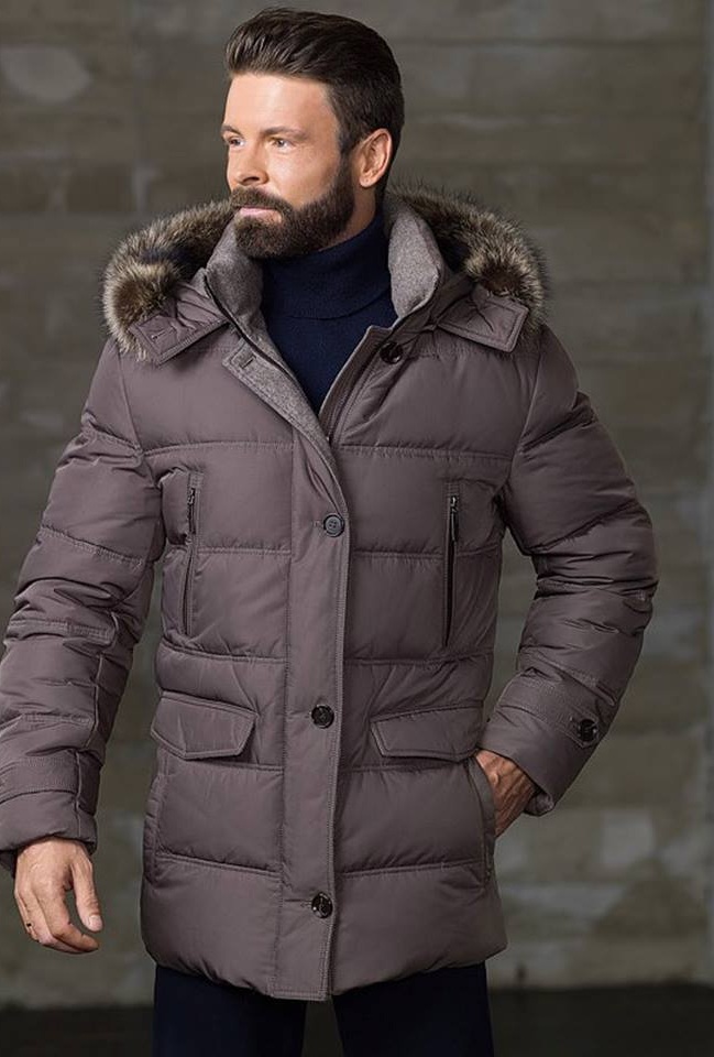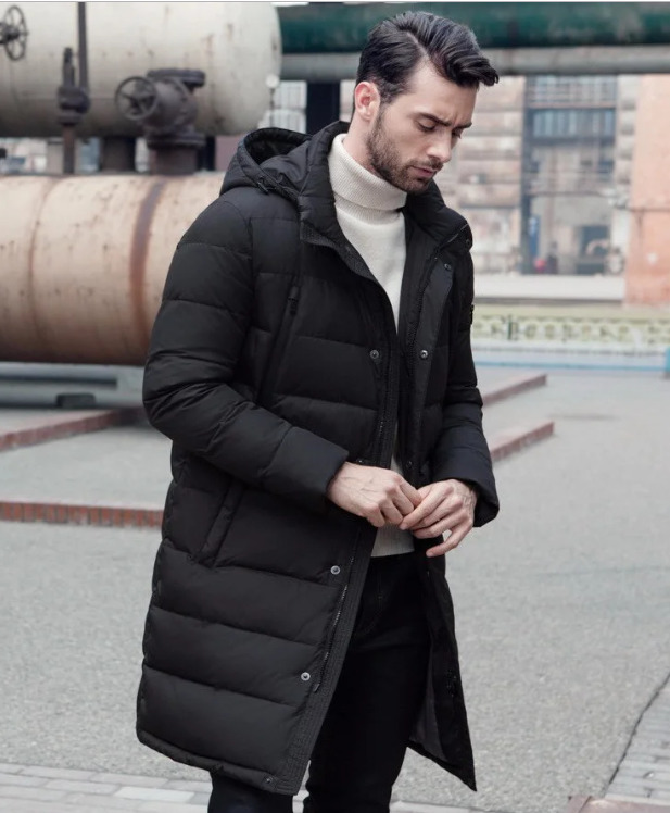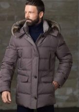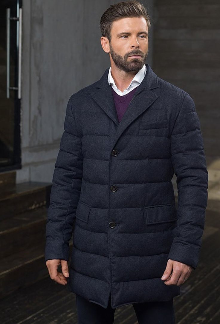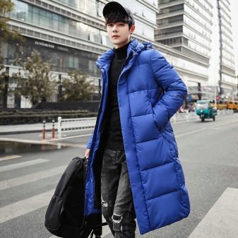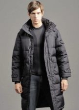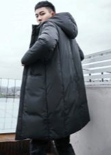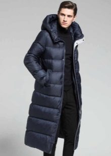 - Ricorda il fisico. La lunghezza di un piumino per un uomo alto non dovrebbe essere inferiore alla lunghezza del ginocchio. Le persone in sovrappeso dovrebbero scegliere modelli che vestano bene fino a metà coscia, evitando la silhouette a forma di A. I cappotti dal taglio a bozzolo o oversize sono controindicati per gli uomini di bassa statura.