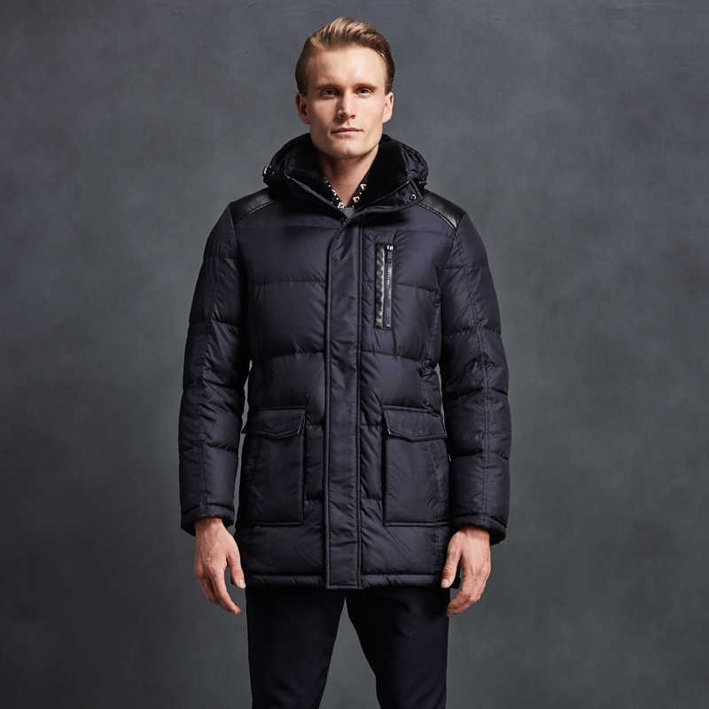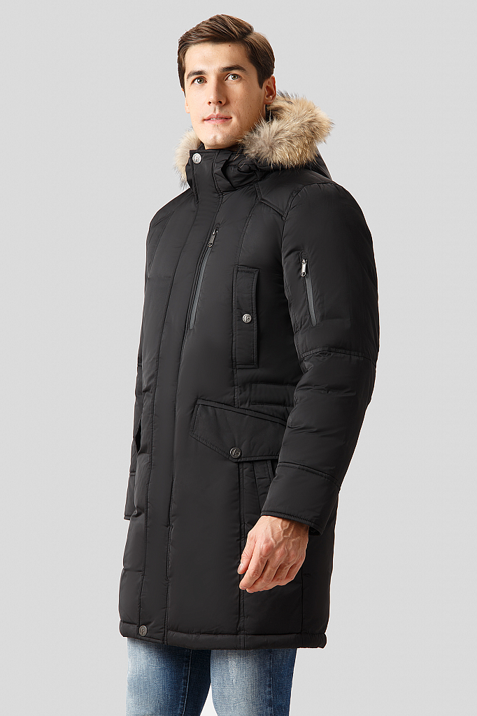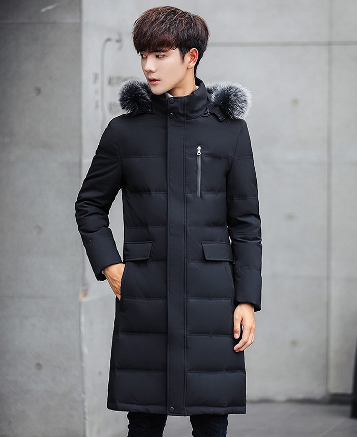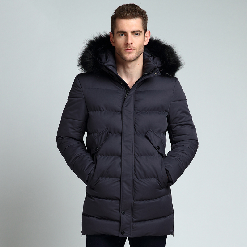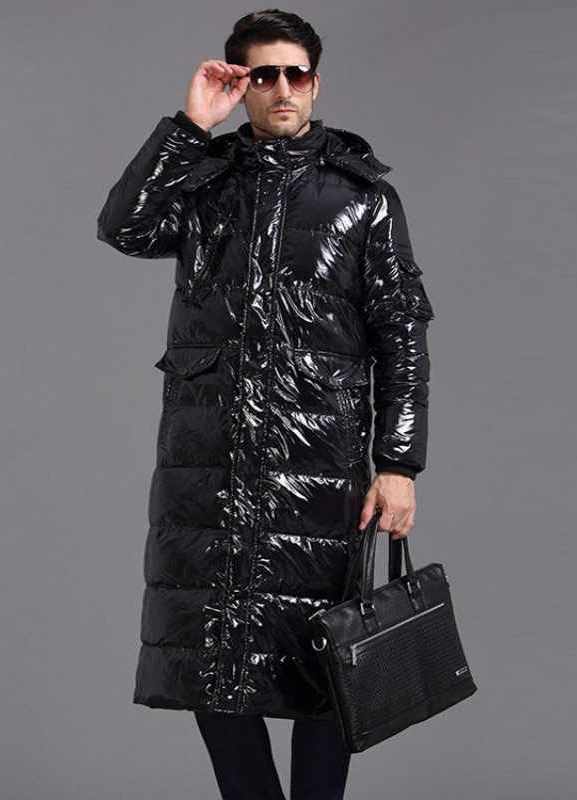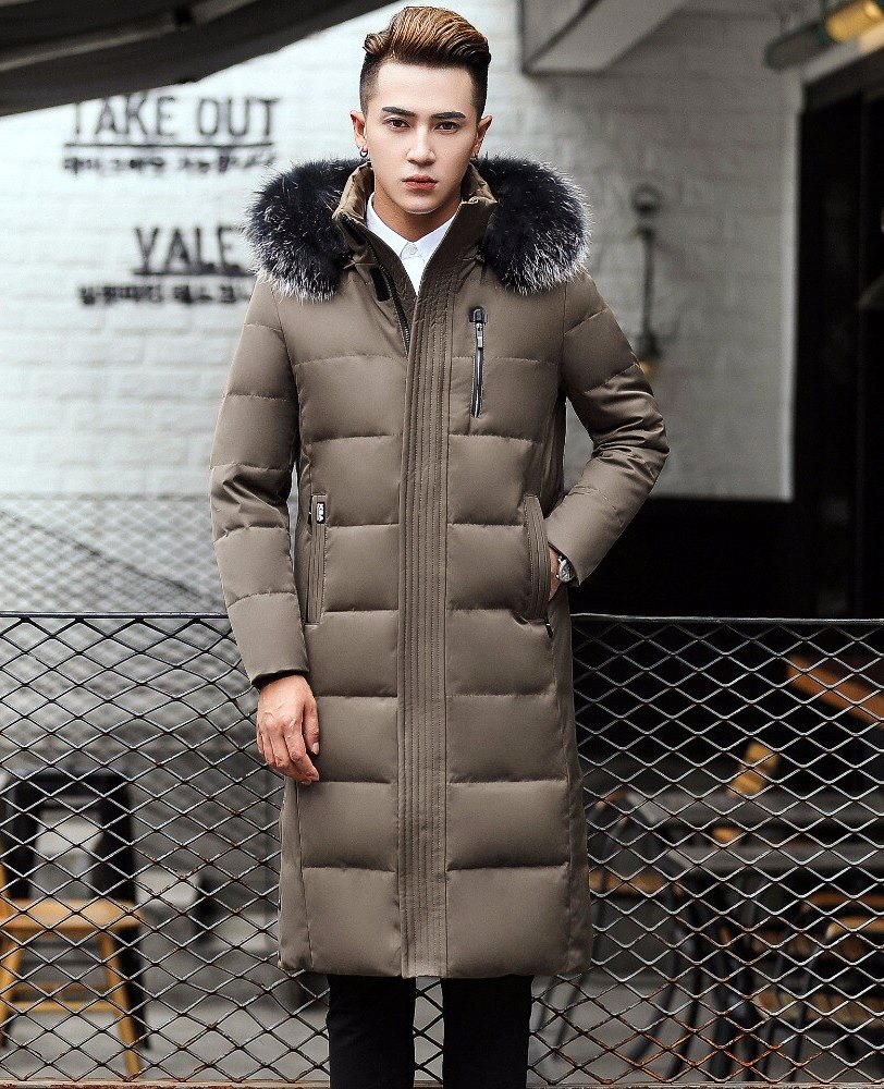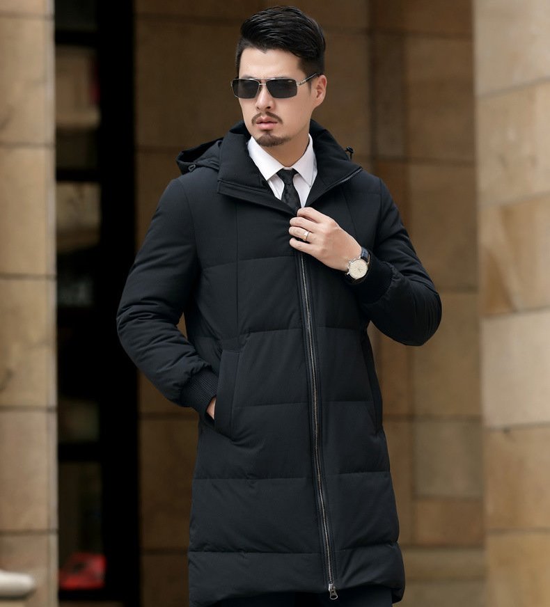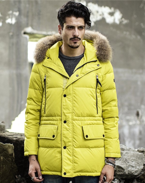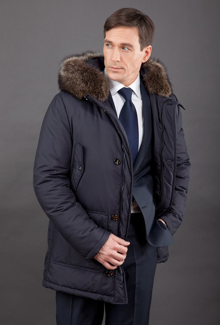 - Ricorda il fisico. La lunghezza di un piumino per un uomo alto non dovrebbe essere inferiore alla lunghezza del ginocchio. Le persone in sovrappeso dovrebbero scegliere modelli che vestano bene fino a metà coscia, evitando la silhouette a forma di A. I cappotti dal taglio a bozzolo o oversize sono controindicati per gli uomini di bassa statura.