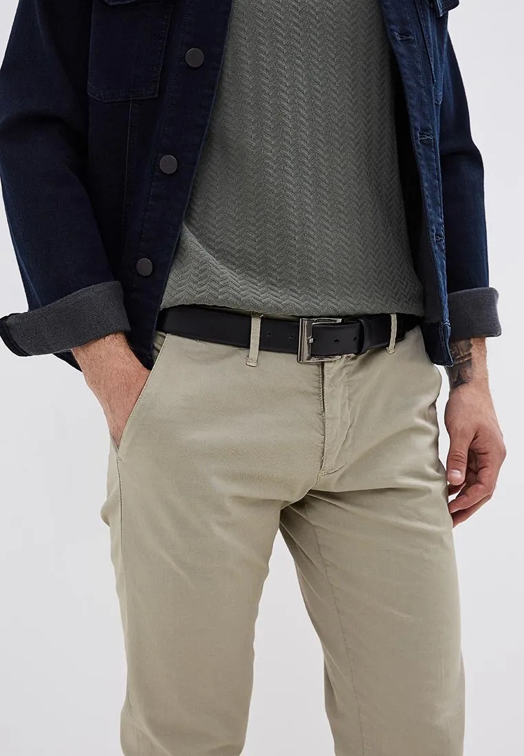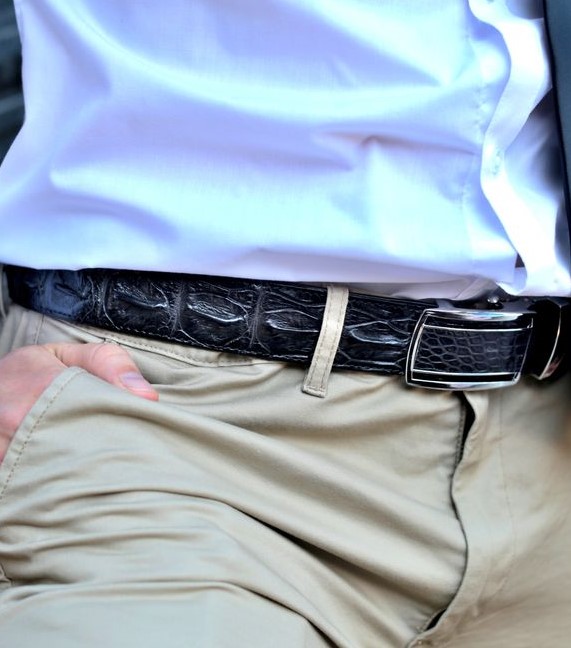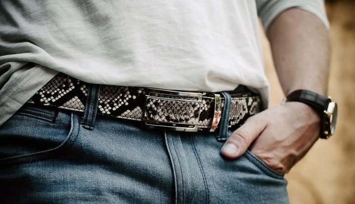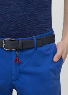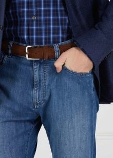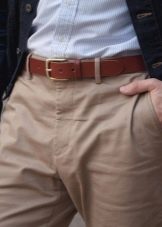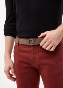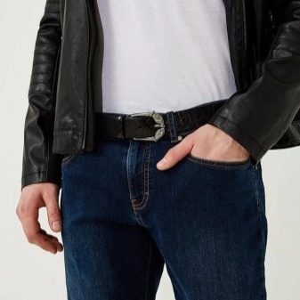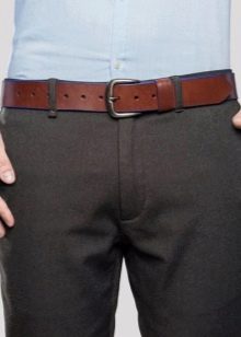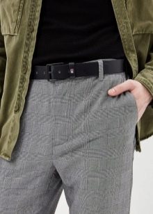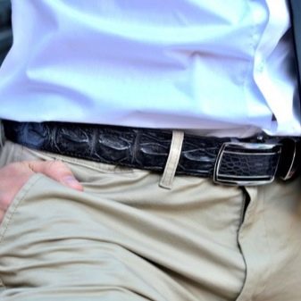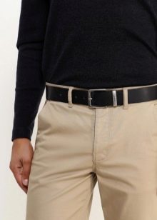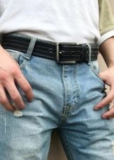 I materiali della sua fabbricazione possono essere diversi: pelle, tessuti, pelle scamosciata e altri. Il materiale abituale per questo accessorio è senza dubbio la pelle. La versione in pelle si distingue per la sua versatilità: puoi abbinare questo materiale a qualsiasi cosa. Questa cintura è perfetta per jeans, pantaloni e pantaloncini. Scegliendo una cintura laconica nera, un uomo non dovrà chiedersi con cosa abbinarlo. ma alcune varianti della pelle (ad esempio, pelle di coccodrillo o struzzo) sono piuttosto stravaganti, quindi, vale la pena usare una cosa del genere in un'immagine con molta attenzione. La pelle naturale ha sicuramente una serie di vantaggi.