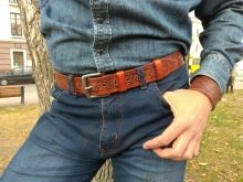 - Pelle trattata. Ci sono diverse opzioni per queste cinture in pelle. Ognuno, naturalmente, ha le sue caratteristiche. Ad esempio, la pelle a grana si distingue per la sua trama espressiva e l'elevata durata. La pelle levigata viene lavorata da vari difetti. Questo materiale viene spesso utilizzato per creare modelli quotidiani e classici. La pelle goffrata è il materiale su cui viene applicato il motivo. La pelle stampata è inoltre impreziosita da varie fantasie.La pelle verniciata si distingue dalle altre per la sua superficie quasi a specchio. Tuttavia, queste cinture hanno maggiori probabilità di graffiarsi. Pertanto, di solito sono indossati "in uscita".
