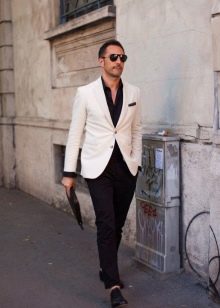 - a un abito bianco - una combinazione è possibile, ma molto controversa, il set evoca chiaramente associazioni con mafiosi, che camminavano in questo modo all'inizio del secolo scorso.