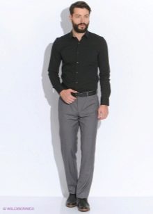 - Abito grigio. Le cose si completeranno a vicenda sia nel colore che nel significato. Ottima opzione di lavoro. Se scegli un look estivo, allora può essere un abito di lino grigio e una camicia nera a maniche corte.