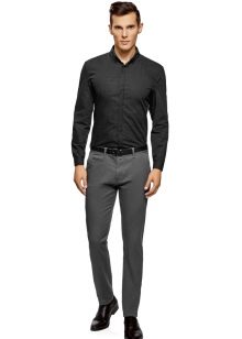 Tali vestiti danno a un uomo un po 'di mistero, sicuramente attira l'attenzione su di lui. Se vuoi mostrare forza, sicurezza, categoria, serietà nella tua immagine, scegli una camicia nera. Ma ha bisogno di "compagni" che non permettano di distruggere l'integrità dell'immagine creata.
