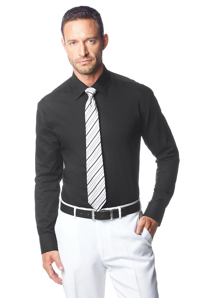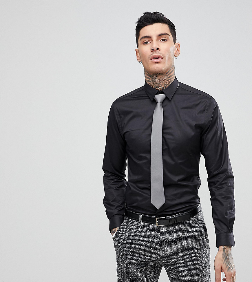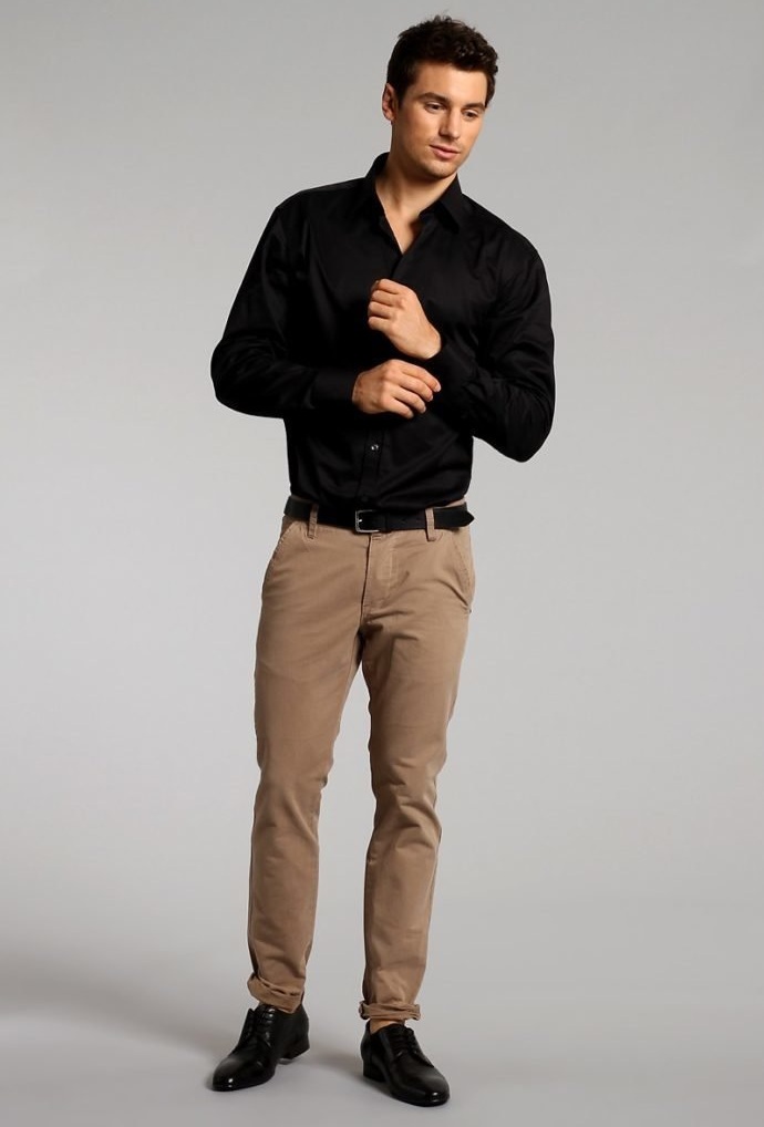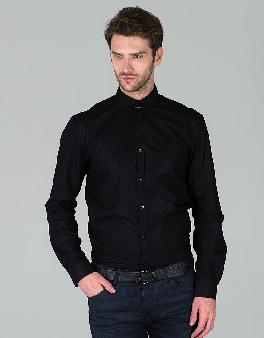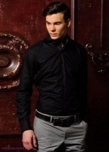 Le camicie di colore scuro sono appropriate sia come parte di un guardaroba di lavoro (ufficio), come parte di un vestito per una celebrazione, sia come abbigliamento quotidiano. Se stai andando a un evento festivo, il total look nero può sembrare un po' cupo., quindi, puoi diluirlo con bellissimi gemelli o una cintura con fibbia originale.