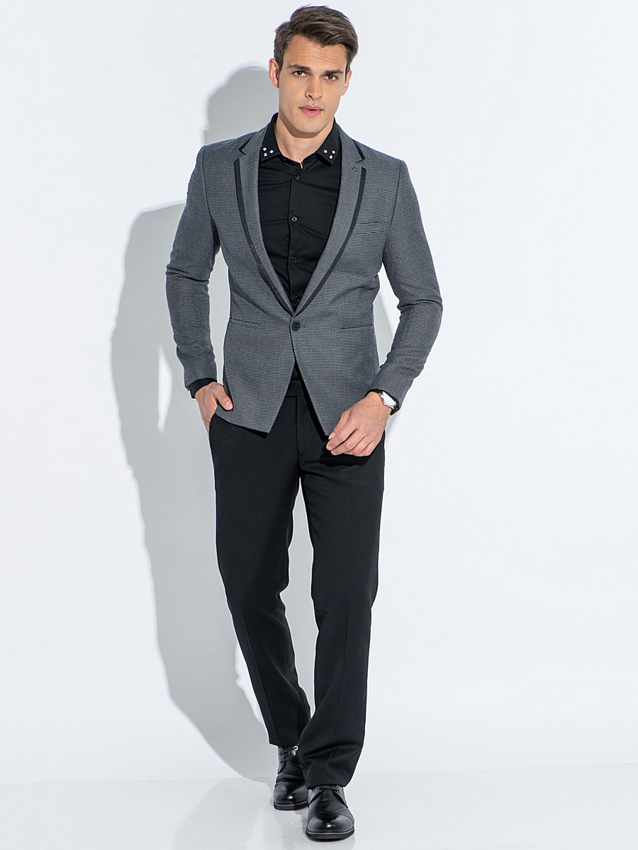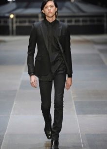 - Giacca non classica. Queste cose sono luminose di per sé, un po' stravaganti. Succede che tali archi debbano essere bilanciati e una camicia nera fa un ottimo lavoro con questo compito.