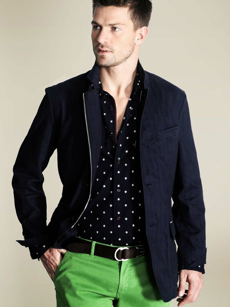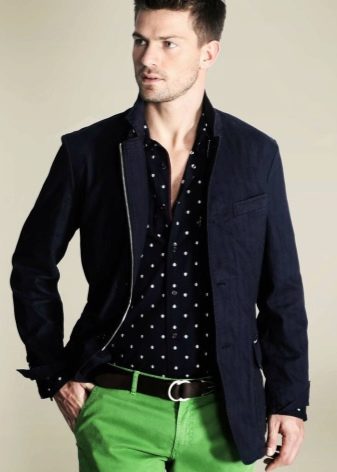 - I pantaloni sono verdi. Un look più accattivante che si addice a un uomo che non vuole restare nell'ombra. Completa il tuo outfit con un'elegante cintura in pelle marrone per il giorno.