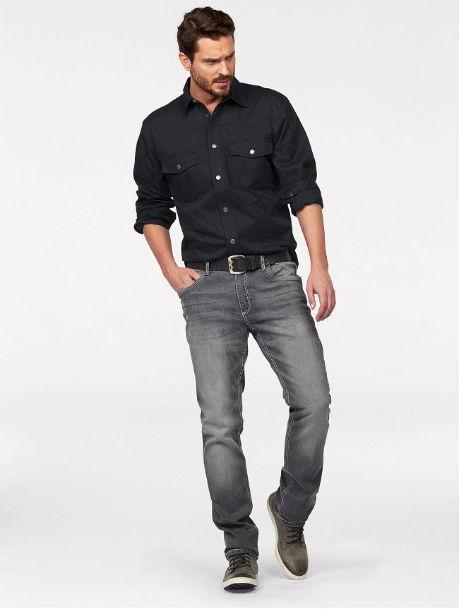 - Jeans. Quasi tutti i jeans di colore standard possono essere indossati con una camicia nera.