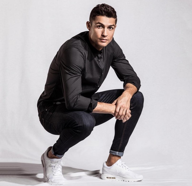 - Cristiano Ronaldo spesso si vede indossare una camicia nera.Ma la parte inferiore dell'immagine è diversa, e anche così inaspettata, per esempio. Ma se hai una figura simile e una statura alta, puoi tranquillamente seguire l'esempio di una superstar.