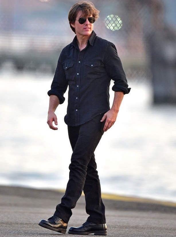 - Opzione da indossare tutti i giorni. Tom Cruise è affascinante e convincente in un abbigliamento così modesto. Se vuoi comfort, severità, ma senza molta solennità nel tuo abbigliamento, l'opzione con una camicia così nera sarà molto utile.