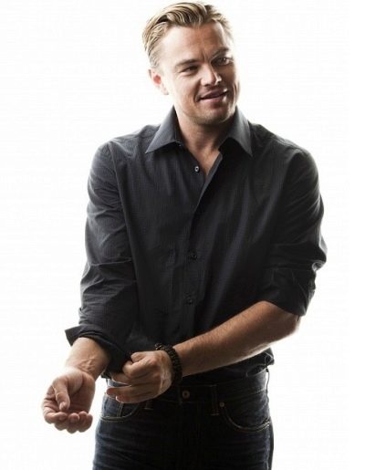 - Un'opzione semplice con i jeans, come in questo esempio con Leonardo DiCaprio, snellisce e non ostacola nei movimenti. Se la tua maglietta nera è fantasia, potrebbe non corrispondere ai tuoi jeans.