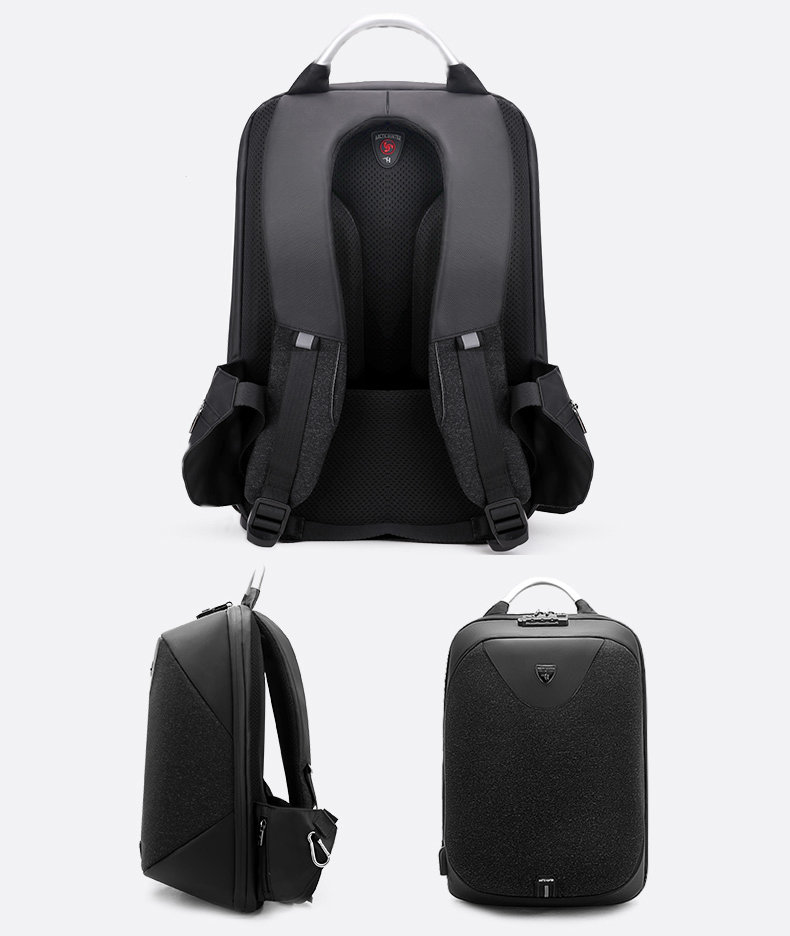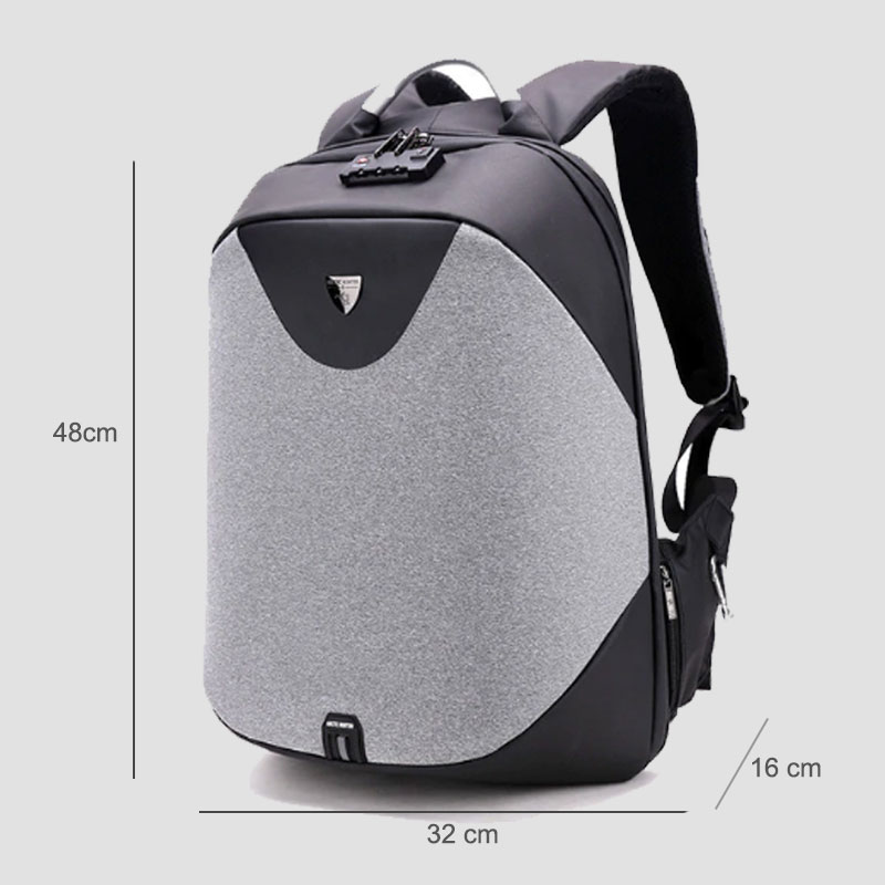 Cacciatore artico B00208 - un modello speciale, in quanto è appositamente progettato per proteggere dai ladri.Il manico in metallo e il poliestere 900D ad alta resistenza rendono questo zaino resistente. Volume - 24 litri, dimensioni - 32x48x16 cm, c'è un lucchetto a combinazione integrato con un numero a tre cifre. Peso - 1,1 kg, ha una porta USB, cinghie regolabili, sistema AirFlow e supporto in vita. Le tasche d'acqua laterali sono fissate con un piccolo moschettone.
