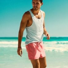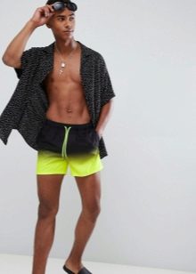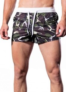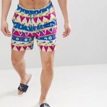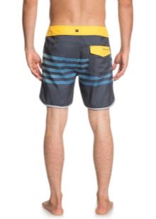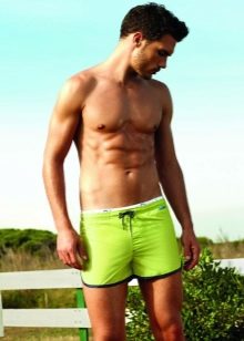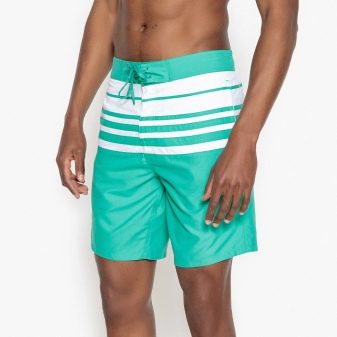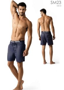 La lunghezza delle modifiche varia da metà coscia al ginocchio. Ciò consente loro di essere utilizzati come abbigliamento maschile versatile per la spiaggia. Correggono perfettamente la figura, nascondendo le imperfezioni del corpo. A seconda del taglio, i prodotti possono avere una vita regolare o bassa. Per regolare il volume, i pantaloncini sono dotati di allacciatura e chiusura di regolazione.