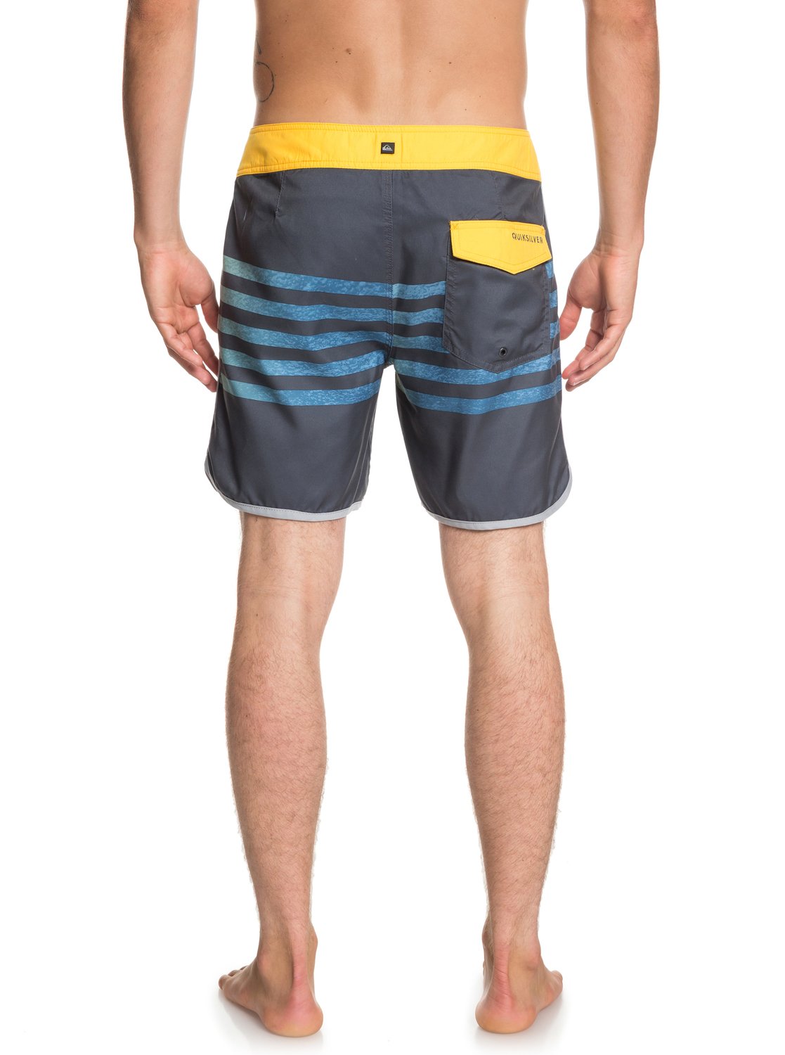Oltre a un'ampia cintura, anatomicamente aderente al corpo, e un laccio resistente, i pantaloncini da surf hanno una tasca posteriore.