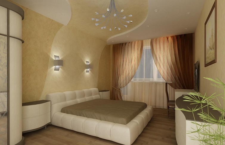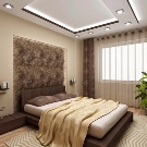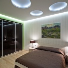 Quest'ultima opzione prevede l'installazione di gruppi di faretti, ognuno dei quali ha da 3 a 5 corpi illuminanti. Sono posizionati in due o in tutti e quattro gli angoli della camera da letto. Dovremmo anche menzionare schemi come "onda" e "serpente". Sono particolarmente adatti per camere da letto allungate o grandi, rispettivamente con uno o due lampadari.