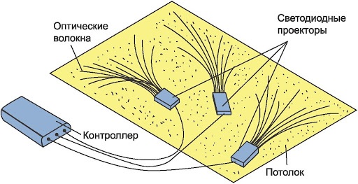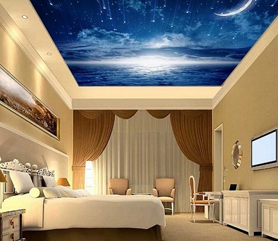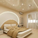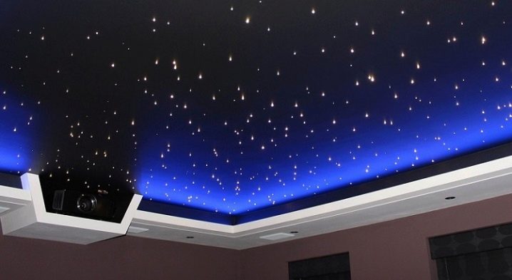 Questa opzione è una manna dal cielo per gli amanti dell'illuminazione originale, come una calamita che attira gli occhi degli altri. Non è facile da implementare, ma il risultato giustificherà facilmente i costi necessari. La base del "cielo stellato" è un film blu scuro o nero, spesso decorato con stampa fotografica su un tema spaziale.