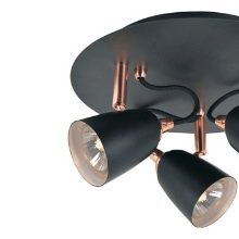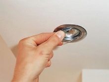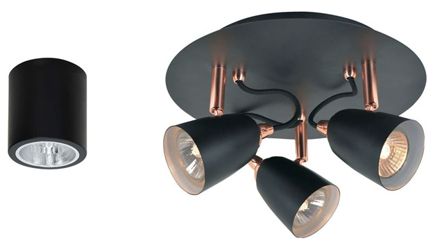 - macchie. Una caratteristica è la presenza di un meccanismo girevole.Tali lampade possono essere installate non solo singolarmente, ma anche in gruppi (la seconda opzione prevede l'uso di un binario o di una base comune). Il design dei punti consente di modificare la direzione del loro flusso luminoso, il che è un notevole vantaggio.