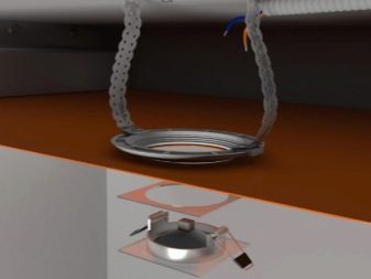 - Sovraccarico. Quasi l'intero corpo del dispositivo è all'esterno, il che lo rende molto evidente, ma consente di risparmiare spazio dietro il soffitto teso. L'ampiezza del flusso luminoso è leggermente più ampia di quella della versione da incasso. Un vantaggio evidente è la varietà di forme offerte dai produttori (anulare, cubica, cilindrica, sferica e altre).