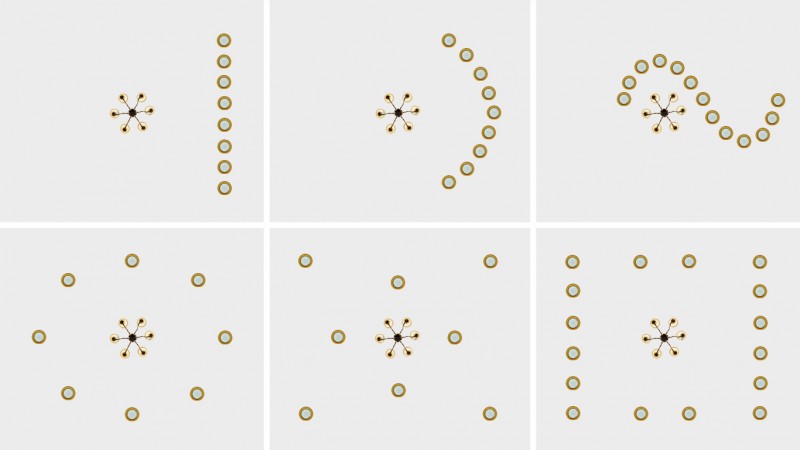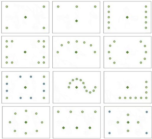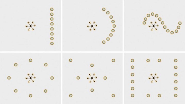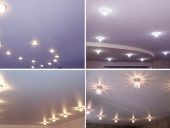 L'opzione in esame è adatta a coloro che vogliono fare con sorgenti luminose puntiformi, senza installare un dispositivo principale. La soluzione a tale problema richiede un calcolo preliminare per determinare il numero esatto di elementi utilizzati. Un ruolo altrettanto importante è giocato dalla posizione di quest'ultimo sul soffitto, implementato secondo diversi schemi di base: