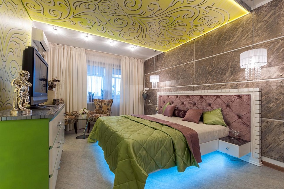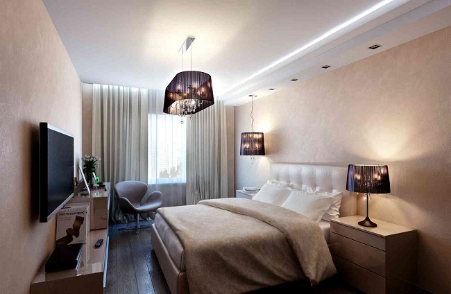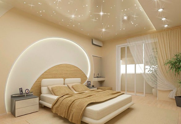L'approccio moderno all'organizzazione dell'illuminazione nella camera da letto è molto più complicato, specialmente nel caso dell'utilizzo di un soffitto teso. Prevede lo sviluppo preliminare di un progetto che tenga conto di tutte le caratteristiche stilistiche e funzionali dei locali.