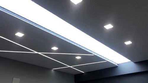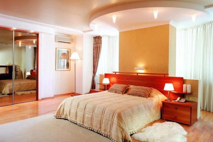 Di norma, in tali casi, l'apparecchio di illuminazione è montato nella parte centrale del soffitto. Schemi separati consentono l'uso di due lampadari contemporaneamente, ad esempio per illuminare una stanza allungata o suddividere in zone una camera da letto-soggiorno. Per quanto riguarda gli spot, sono più spesso posizionati simmetricamente attorno all'elemento principale, secondo uno dei seguenti principi:
