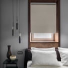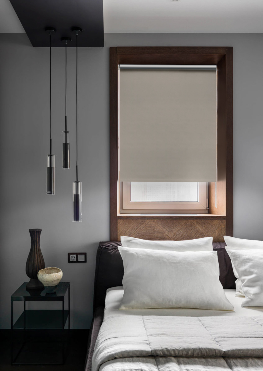 - Le tende a rullo oscuranti sono più popolari nelle soluzioni interne minimaliste. Possono essere realizzati in qualsiasi tonalità di colore, ma le più popolari sono ancora le opzioni bianche.