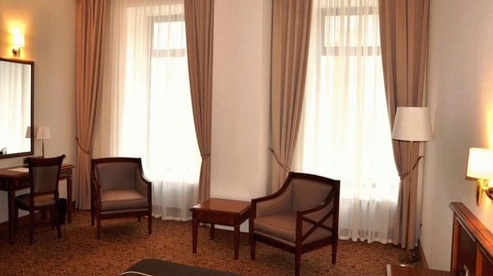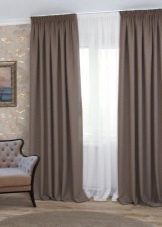 Le tende oscuranti per oscurare le finestre sono disponibili in più versioni contemporaneamente. Possono essere classici - sotto forma di tende multistrato. Gli elementi di schermatura delle ombre sono completati qui con uno strato di materiale ben drappeggiato. Tali tende, impenetrabili alla luce del sole, sembrano piuttosto tradizionali, si adattano armoniosamente a quasi tutti gli interni.