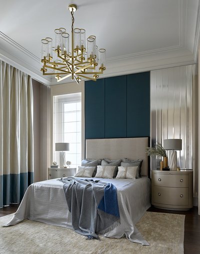 - Un buon esempio di come i tessuti stiano diventando l'obiettivo principale all'interno della camera da letto. Biancheria da letto, federe e tende oscuranti con la stessa stampa creano un'atmosfera speciale di armonia, colori neutri impostati per il riposo e il relax.