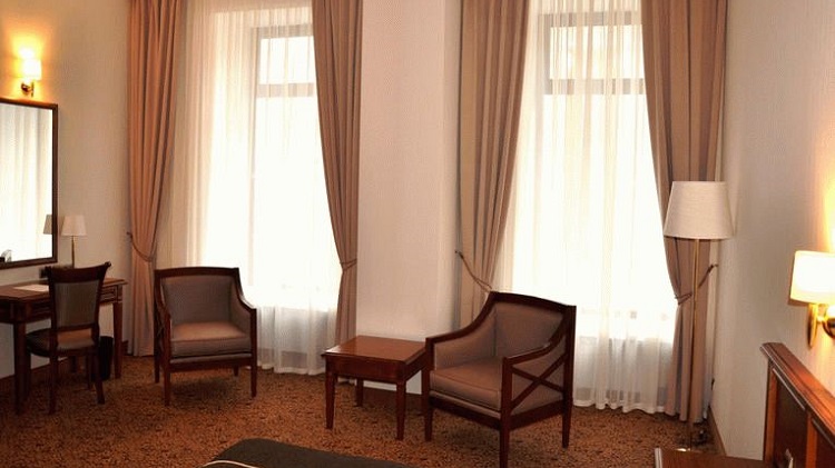 - i mobili in legno in stile classico sono completati da tende di profonde sfumature smeraldo, blu, oro;