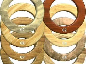 Le opzioni più comuni per la camera da letto sono gli anelli di plastica. Si distinguono per l'accessibilità e un'ampia gamma di colori. In vendita puoi trovare modelli dagli invadenti colori nude all'imitazione del metallo e persino combinazioni di colori esotici leopardati. Ciò consente al proprietario della stanza di scegliere gli anelli per abbinare le tende o, al contrario, creare un accento elegante.
