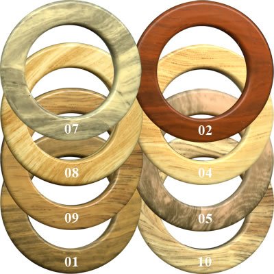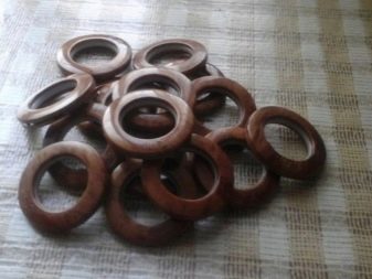 Gli occhielli in legno sembrano piuttosto eleganti. Tuttavia, sono rari nel libero scambio e la produzione su misura sarà una bella somma. Alcuni produttori offrono controparti economiche in legno tenero, ma tali elementi di fissaggio sono generalmente di breve durata. L'umidità deforma gli anelli di legno, quindi devono essere rimossi prima del lavaggio.
