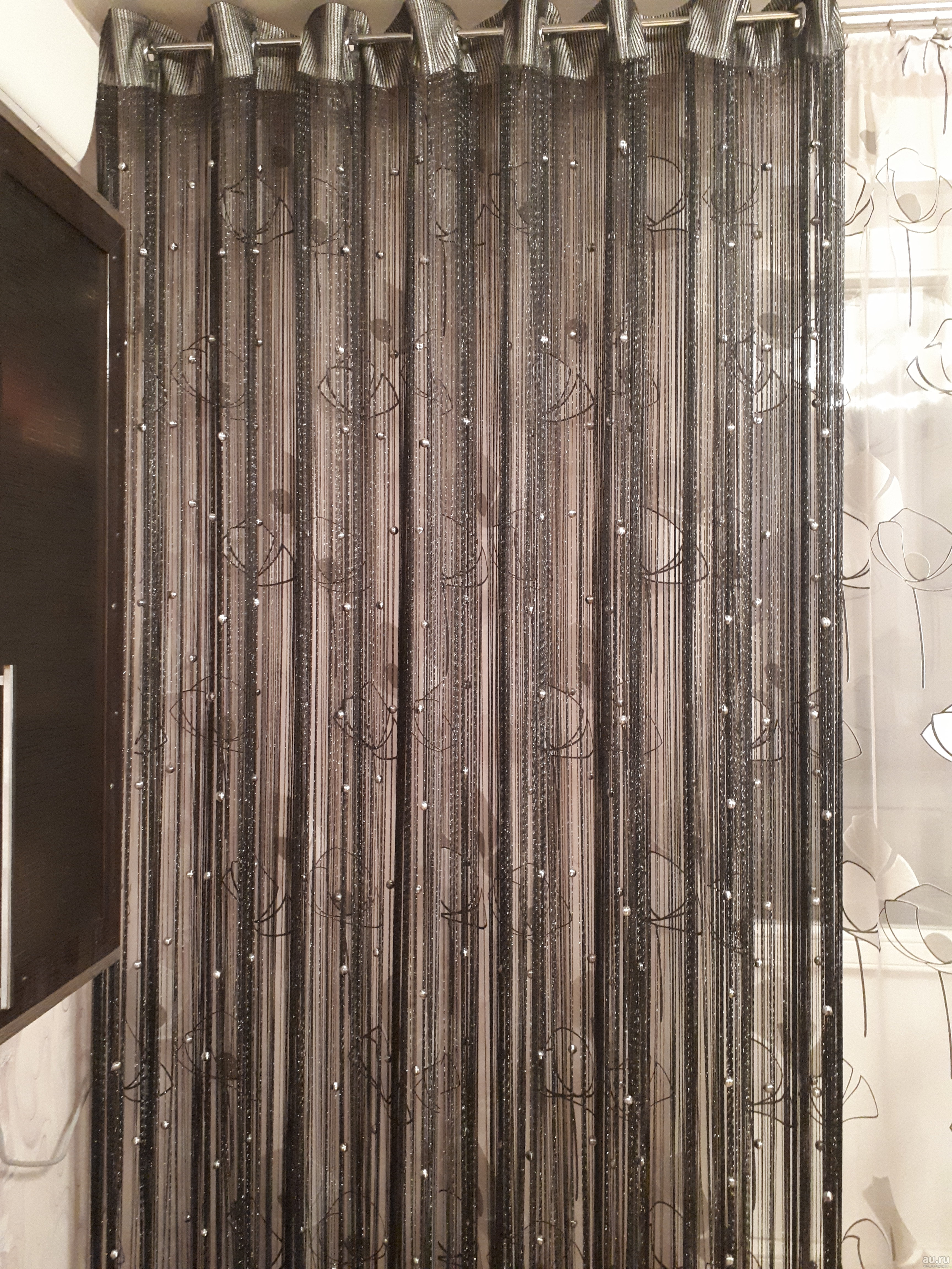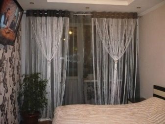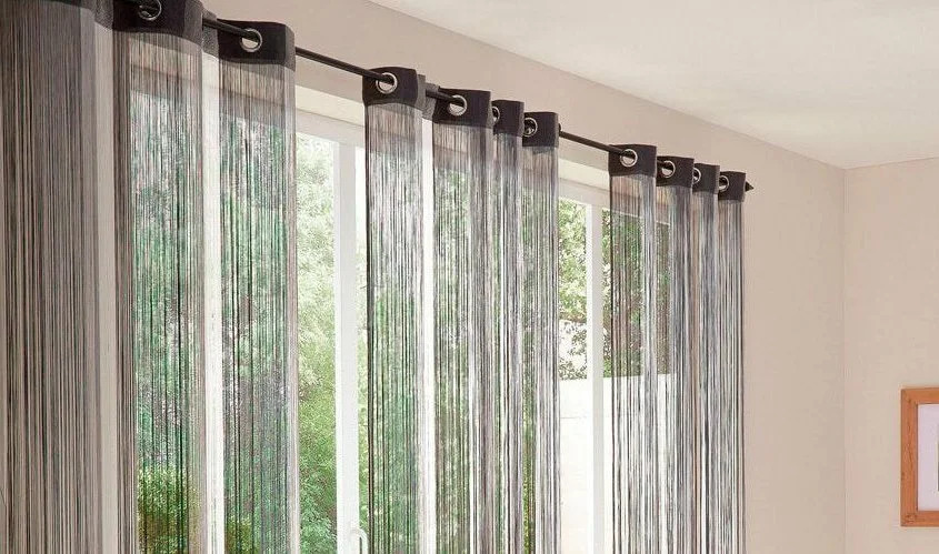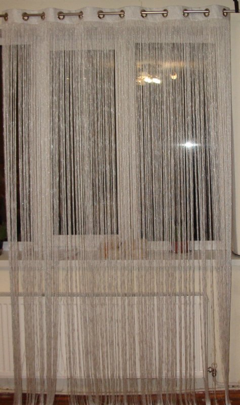 Le tende a filamento si adattano bene a qualsiasi interno; possono anche essere fissate agli occhielli. A proposito, si ricorre a tale soluzione non solo per la decorazione delle finestre, ma anche per la suddivisione in zone della stanza.