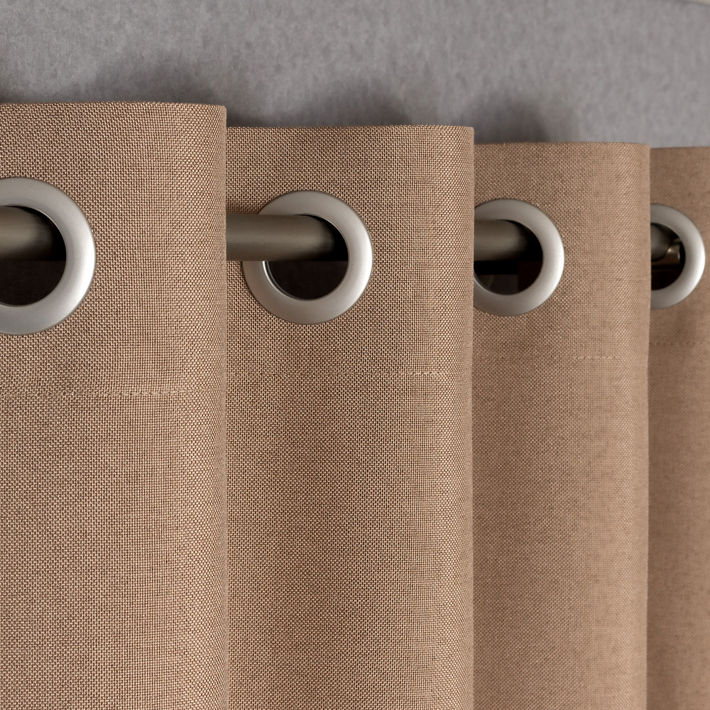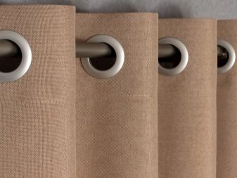 Gli occhielli in metallo sono l'opzione più pratica. Possono servire per diversi decenni, pur mantenendo il loro aspetto estetico. oltretutto il metallo si combina organicamente con gli stili popolari oggi, high-tech, minimalismo e loft. I più pratici sono gli anelli in acciaio inossidabile, sono resistenti alla ruggine e facili da lavare. Tuttavia, il loro costo è piuttosto elevato, quindi, in condizioni di budget limitato, è meglio dare la preferenza agli occhielli in acciaio e ottone: in questo caso, gli elementi di fissaggio devono essere rimossi prima del lavaggio per preservare l'aspetto originale.