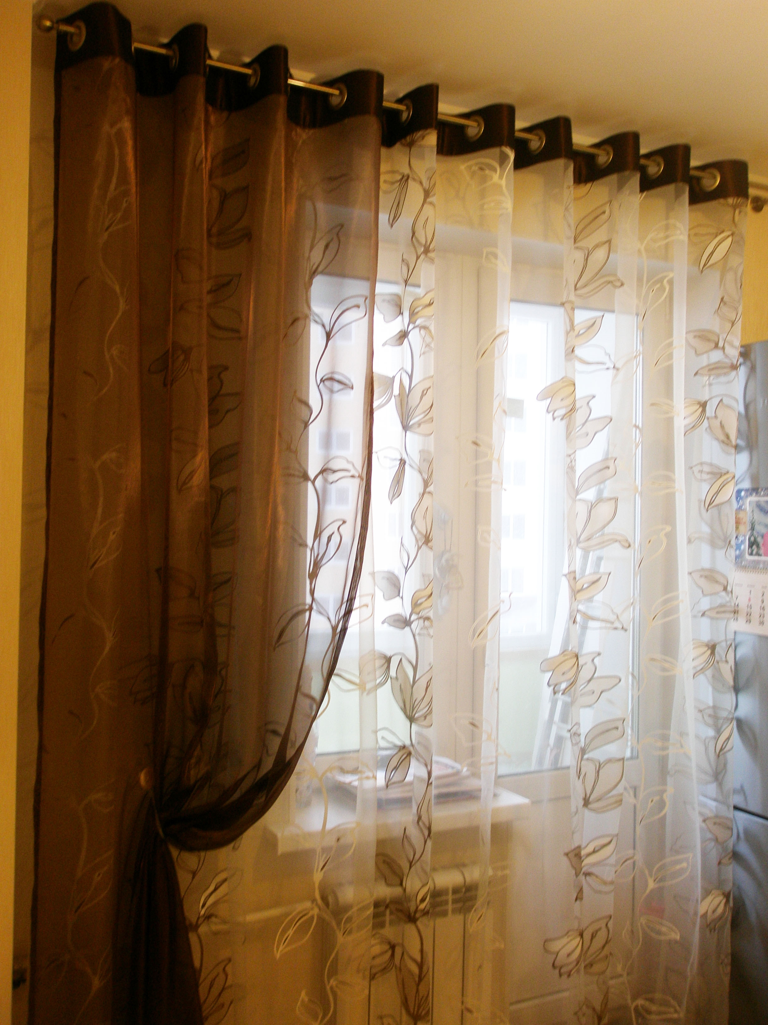 - Per gli amanti del paese e della Provenza, è meglio usare occhielli in legno o imitare la trama del legno. In questo caso, la tela dovrebbe essere di cotone o lino. Un tandem come questo porterà un'atmosfera rustica nella stanza con comfort e semplicità.