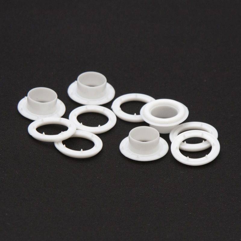 I più diffusi sono gli elementi di fissaggio in plastica. Si distinguono per un prezzo democratico e la più ampia scelta di colori. Le tende su tali elementi di fissaggio non graffiano il cornicione e non emettono un rumore sgradevole. Gli occhielli stessi mantengono la loro integrità a contatto con l'umidità, quindi possono essere lavati insieme al tessuto principale.