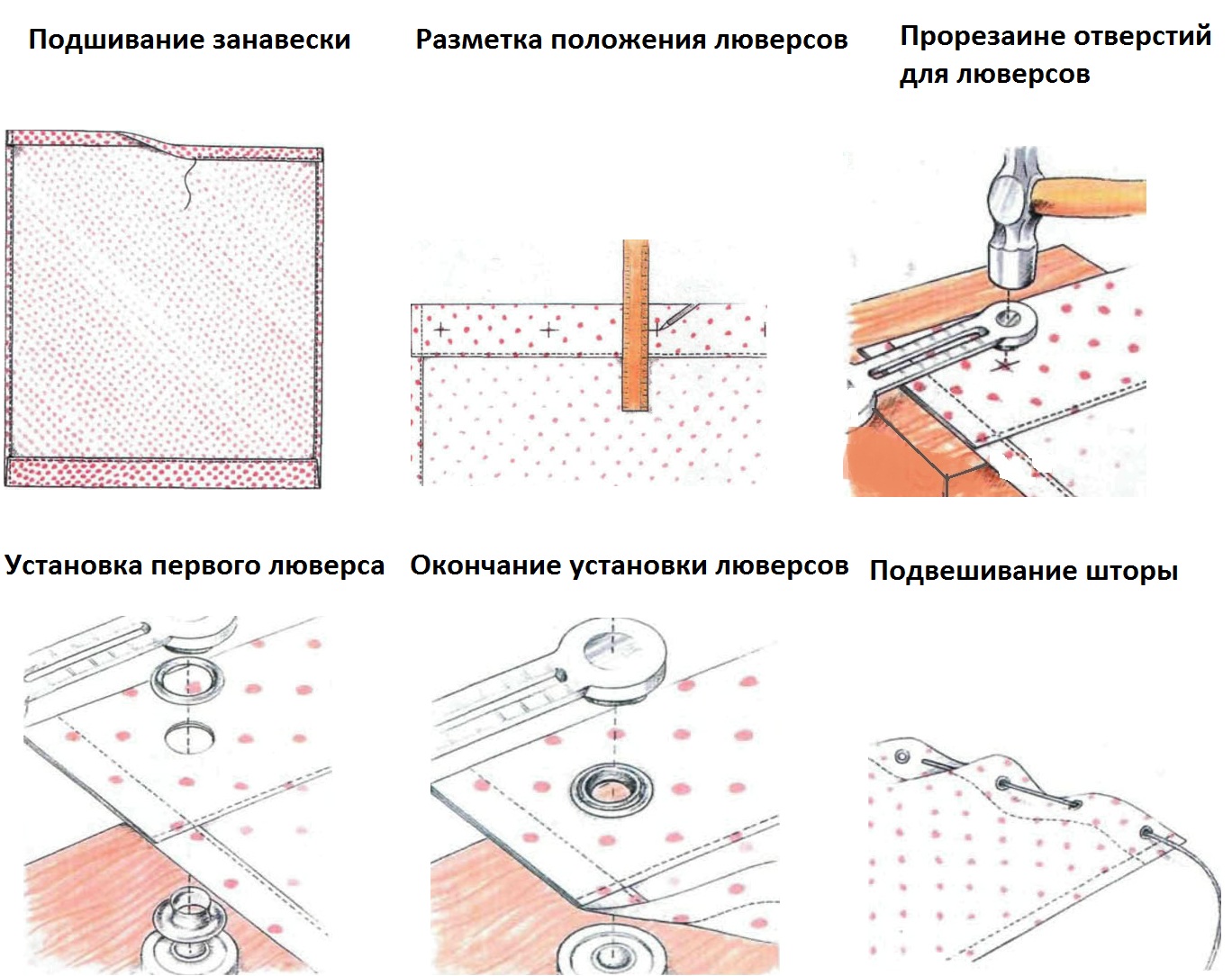Cucire le tende e appenderle agli occhielli non è difficile. Questo lavoro include diversi passaggi.