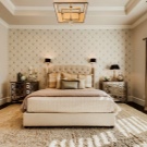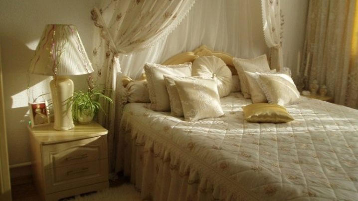 Se hai bisogno di creare l'effetto della luce solare, puoi usare i modelli gialli, ma la versione completamente dorata non è la soluzione ottimale per la camera da letto a causa della sua pretenziosità.