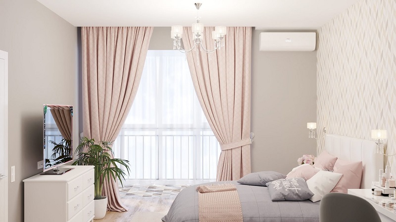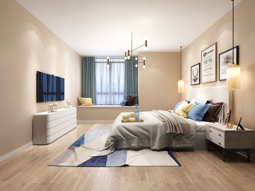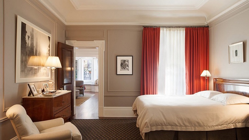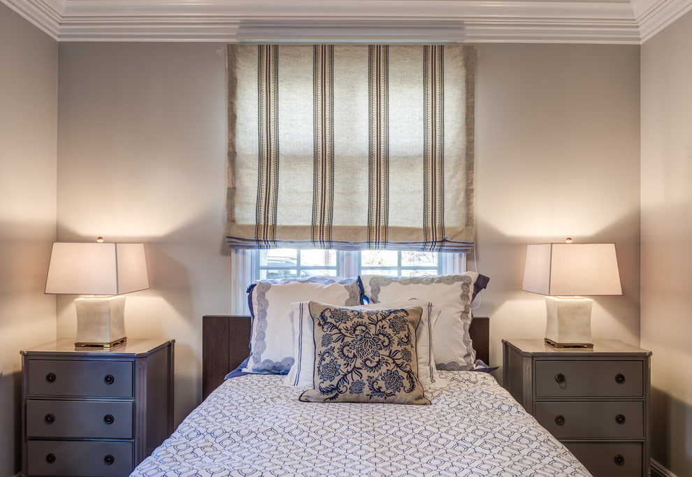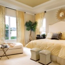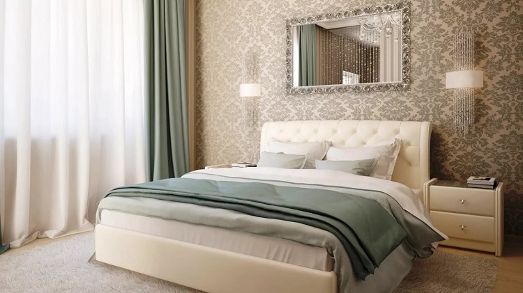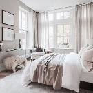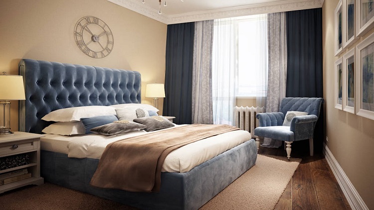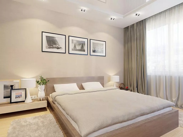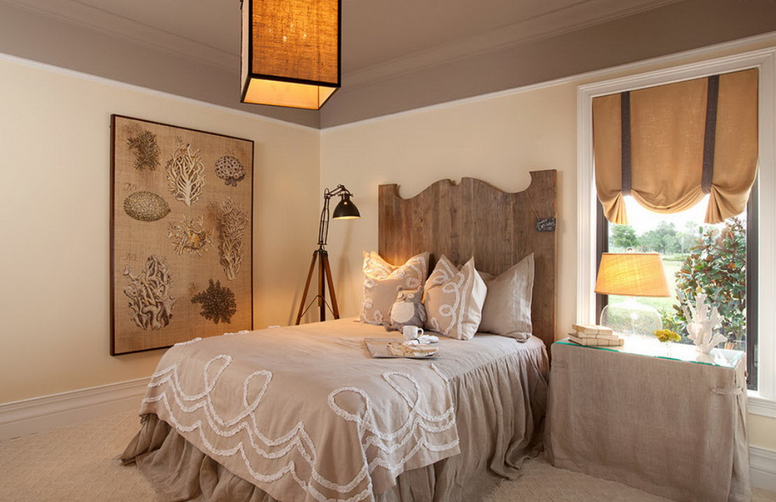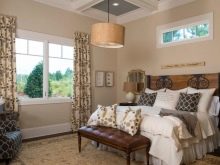 La soluzione ideale per una camera da letto del genere sarebbero tende di colore chiaro che andranno bene con le pareti beige.