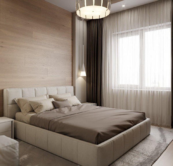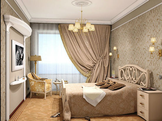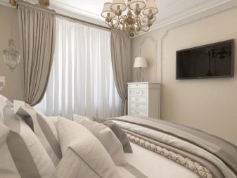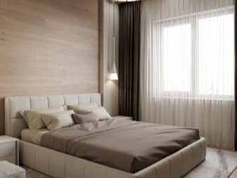 Per le stanze piccole, le tende dovrebbero essere il più lunghe possibile per espanderle visivamente. Se hai bisogno di proteggerti dal colore del sole, è meglio scegliere tende da notte realizzate con materiali densi e che non lascino entrare i raggi del sole. In una camera da letto beige, le tende dovrebbero essere scelte in modo tale che non si distinguano dall'insieme generale della stanza e corrispondano alla sua direzione stilistica.