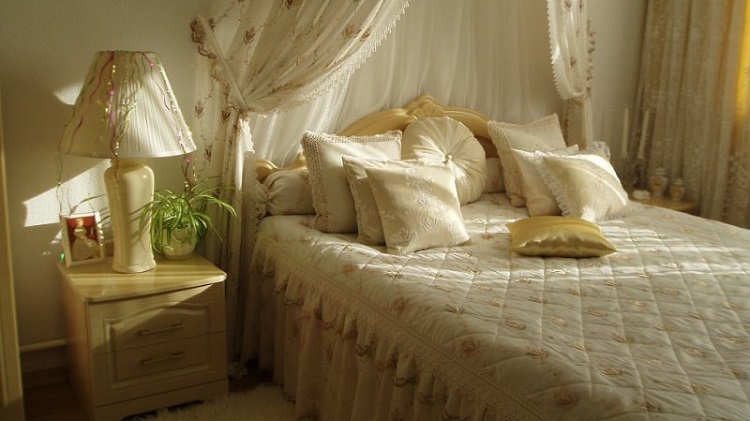 - Le tende sono scelte non solo per lo stile della stanza. Inoltre accentuano l'aspetto del letto.