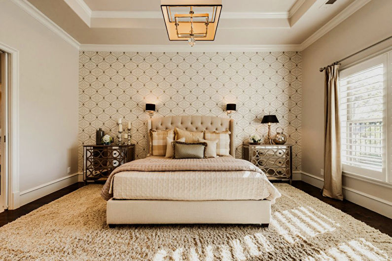 È necessario selezionare alcune tende per una camera da letto beige a seconda dello stile in cui è decorata la stanza. Le opzioni più popolari includono diverse direzioni stilistiche.