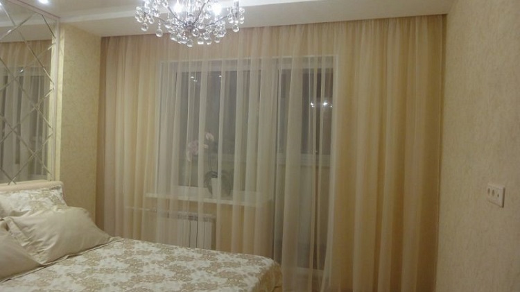 - Tende realizzate in tessuto sottile che sono attaccate alla grondaia e sono abbastanza facili da spostare. Sono presentati in un vasto assortimento di combinazioni di colori, in modo che ognuno possa scegliere la soluzione migliore per la propria stanza. L'unico inconveniente di tali tende è che non sono in grado di resistere e proteggere dai raggi del sole, quindi non possono essere installate in una camera da letto che si affaccia sul lato soleggiato.