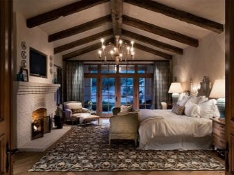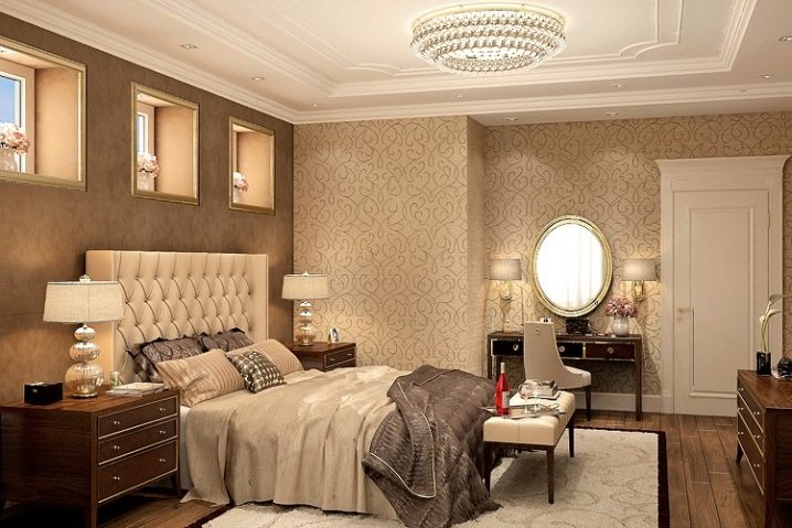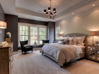 La superficie principale è dipinta di bianco. Sono disponibili varianti con impiallacciatura di legno, intonaco decorativo o tessuto. Una tecnica interessante è decorare il soffitto con modanature in gesso voluminose, cornici attorno al perimetro della camera da letto, travi in legno del soffitto (sia longitudinali che trasversali).