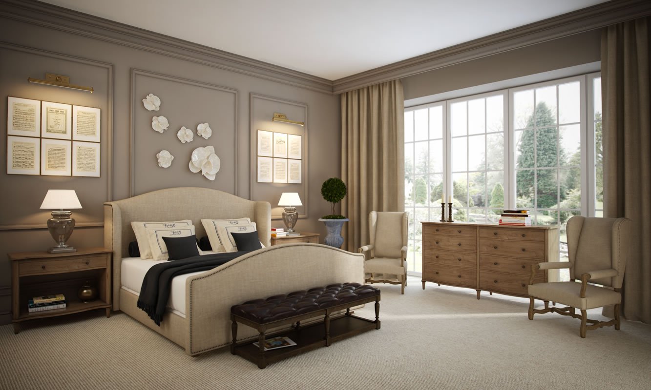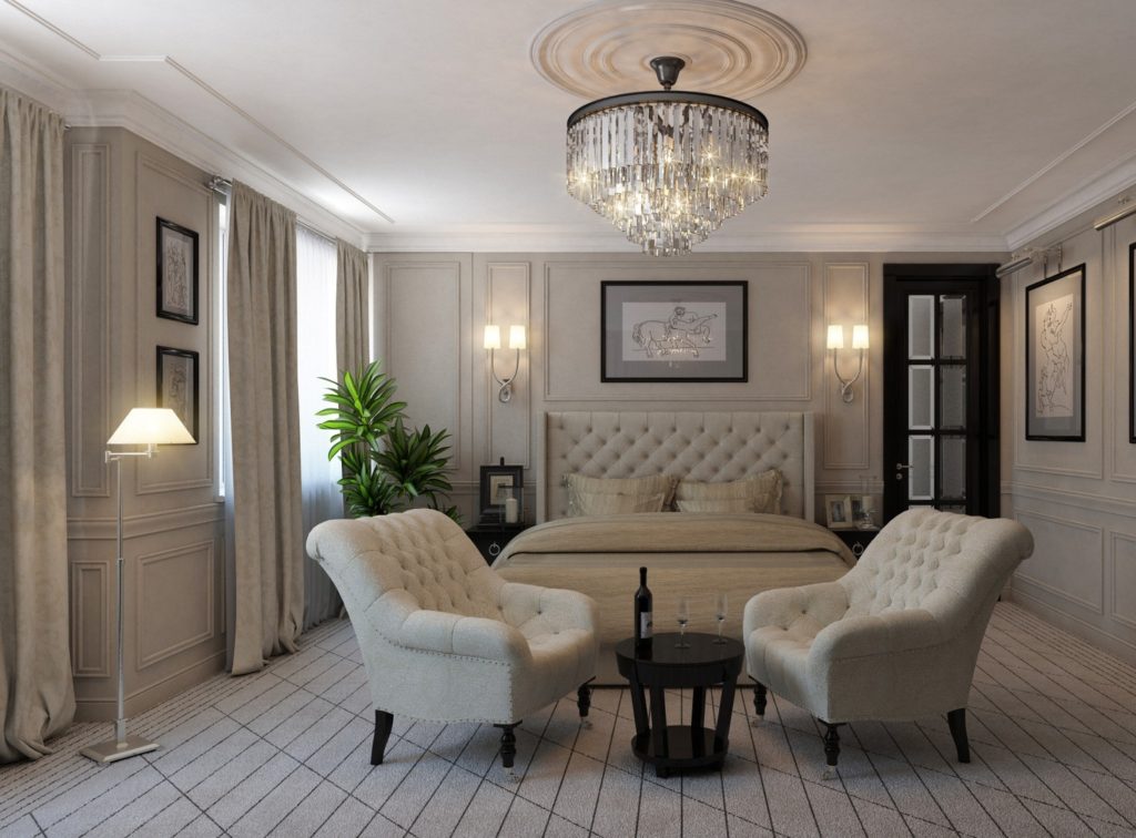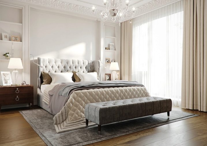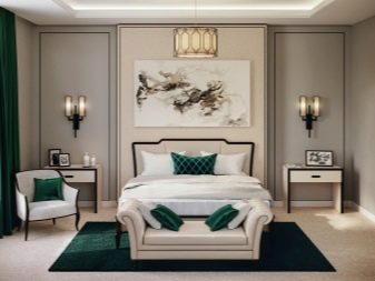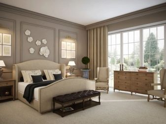 La camera da letto, realizzata in stile neoclassico americano, ti consentirà di combinare semplicità e raffinatezza, materiali artificiali moderni con materiali naturali e incorporare la tecnologia moderna nelle linee rigorose delle superfici. La disponibilità di questa versione degli interni aumenterà l'uso di falsi caminetti, pannelli di plastica nella decorazione murale, elementi tessili realizzati con materiali misti.