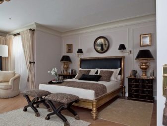 La massima praticità è il criterio principale per la scelta dei mobili. Su entrambi i lati del letto sono presenti comodini per riporre le piccole cose necessarie realizzati in legno liscio lucido o laccato, senza decorazioni. Sedie, tavoli, un piccolo divano dovrebbero essere di forma semplice, abbinati al colore con il resto degli elementi interni.