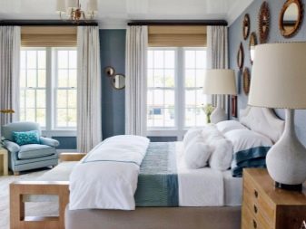 Una moderna camera da letto in stile americano è un luogo dove tutto è subordinato alla comodità e al gusto dei proprietari di casa. L'eclettismo inerente alla cultura americana, la combinazione di elementi apparentemente incongrui, semplici sedie di vimini, il rifiuto di set di mobili, pezzi antichi restaurati raccolti alle aste completeranno l'interno.