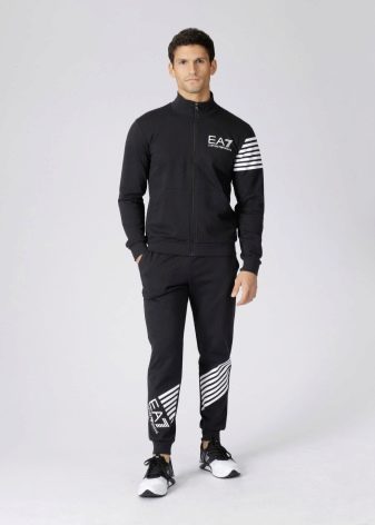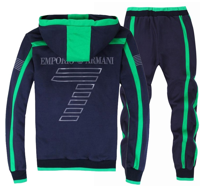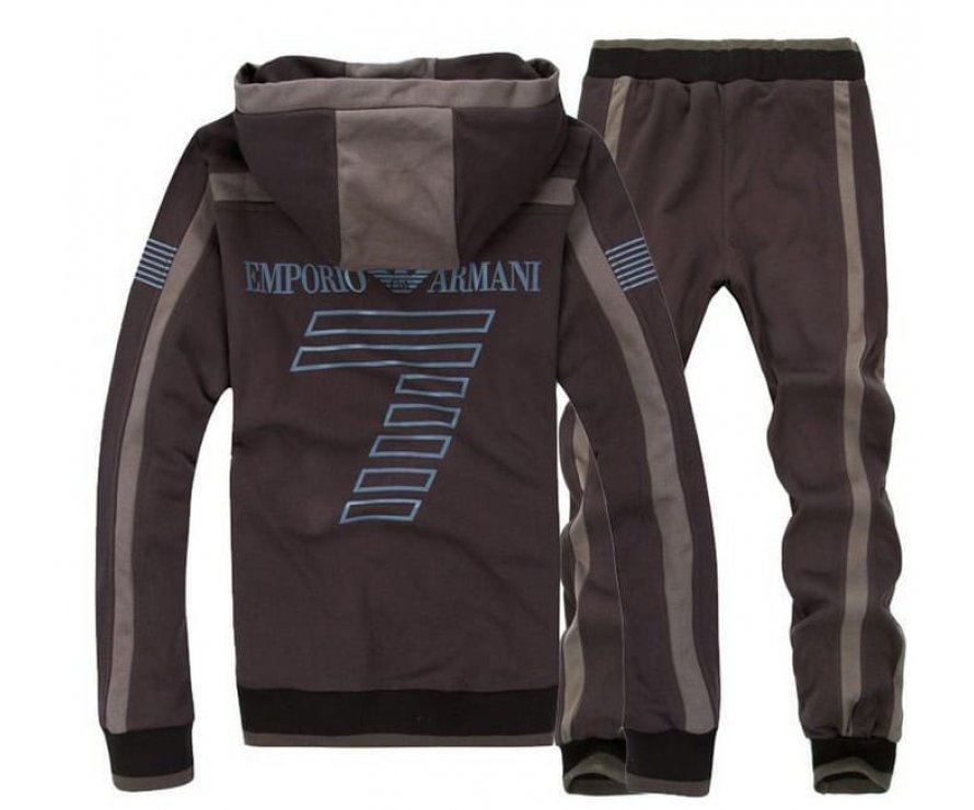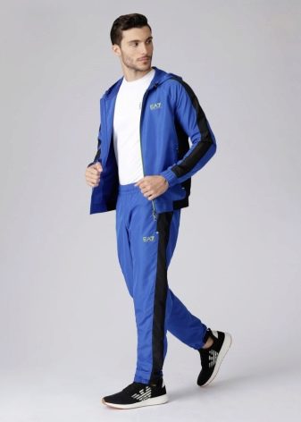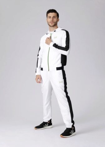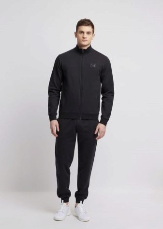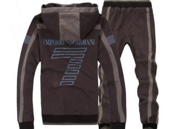 Il marchio Emporio Armani produce tute sportive da uomo che possono essere utilizzate sia per lo sport che per la vita di tutti i giorni. Sono spesso realizzati in cotone, tessuti a maglia o tessuti tecnici speciali. Possono anche essere realizzati in cotone con elastan e spandex. Tali vestiti si distinguono per un livello speciale di resistenza all'usura. Può essere acquistato per tranquille passeggiate e allenamenti dinamici. È pensato per un pubblico giovane.