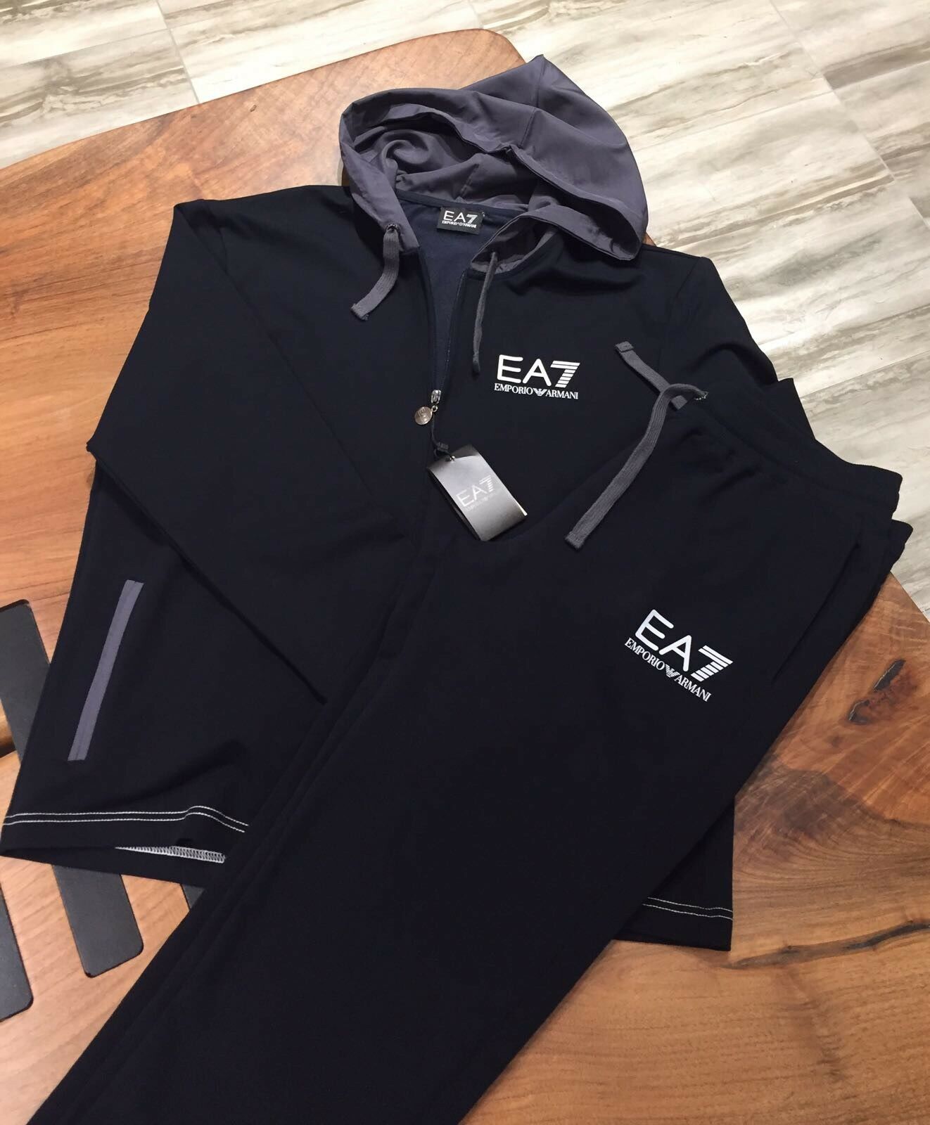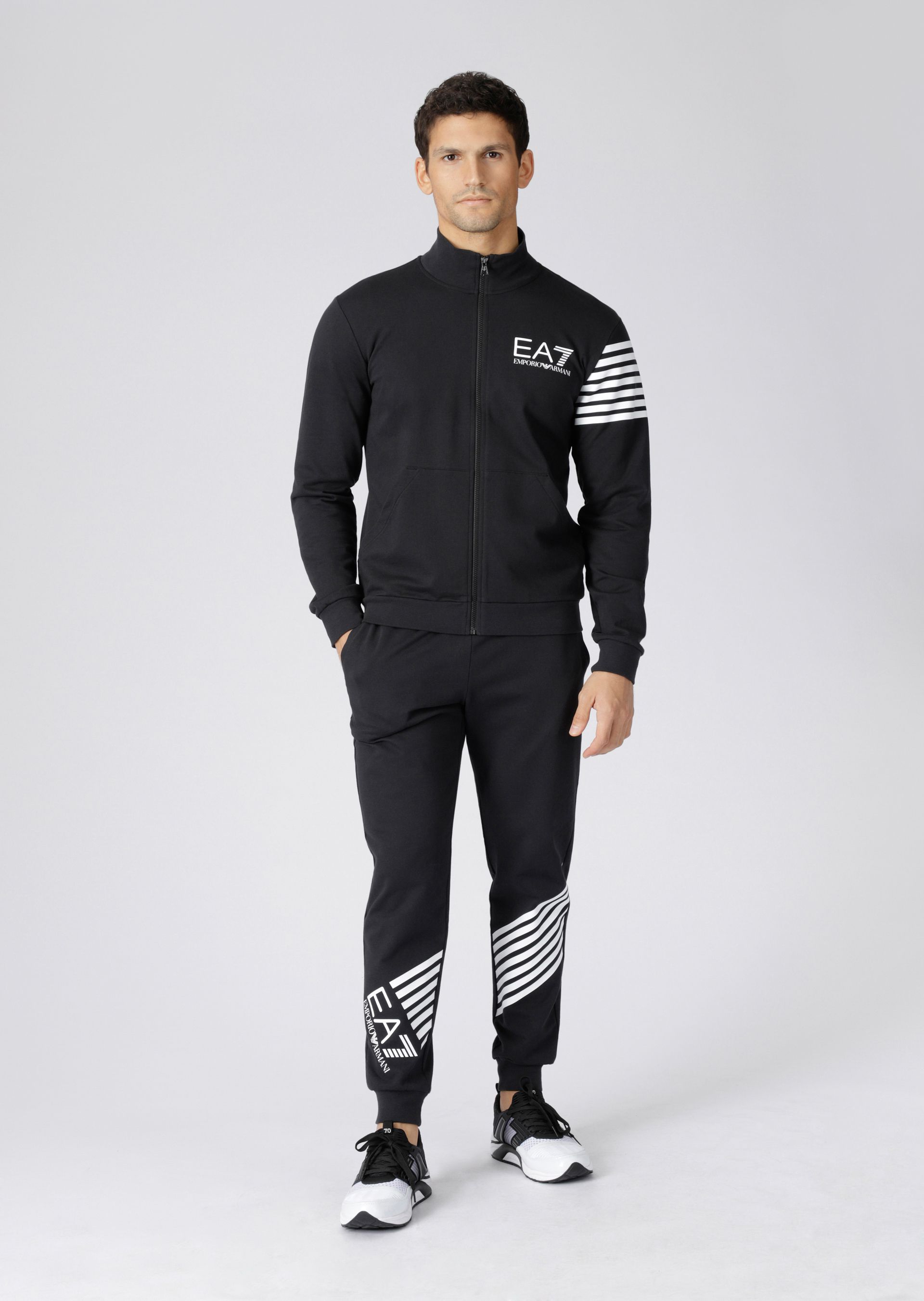 La linea EA7 è stata creata nel 2012 in collaborazione con il produttore Reebok. Questa linea è adatta per gli sport ricreativi o professionali, la vita quotidiana e i viaggi. La linea EA7 include modelli di tute come Train 7Lines, Train Core ID, Tennis Pro. Sono realizzati in jersey di cotone, acetato o tessuto tecnico Ventus 7. La collezione EA7 unisce lo stile sportivo a dettagli moderni. Il più delle volte include jogger e felpe con cerniera. Viene eseguito nei colori grigio, nero, blu, bianco e nero. Questi abiti sono dotati di loghi stampati. I modelli di questa linea includono separatamente magliette sportive, jeggings o jogger, felpe. I pantaloni sono prodotti con un elastico. Di solito hanno anche comode tasche spaziose. La densità dei materiali da cui vengono create le tute EA7 può variare in modo significativo (150-250 g / m2).
