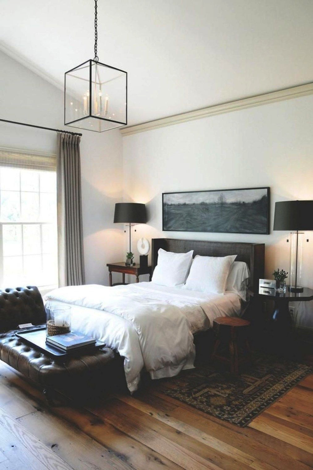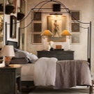 - Lampade da terra e applique sono responsabili del livello medio. Di solito un paio di applique è fissato alla testata del letto e una lampada da terra vecchio stile è posizionata vicino alla sedia.