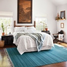 Per i pavimenti in design classico, viene utilizzato il legno, il parquet monocromatico sarà fuori concorso. In alcuni casi, è consentito l'uso del laminato. Un tappeto persiano sarà sempre appropriato. La combinazione di colori del pavimento dovrebbe formare un unico insieme con il resto del design della camera da letto, qui i contrasti sono inappropriati. I colori scuri delle superfici del pavimento dovrebbero essere ripetuti nei mobili.